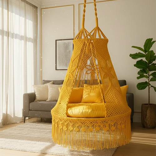Riddhiz Overseas, a Mumbai-based handicraft exporter, specializes in premium handwoven macrame swings that blend authentic Indian artistry with contemporary global design.
