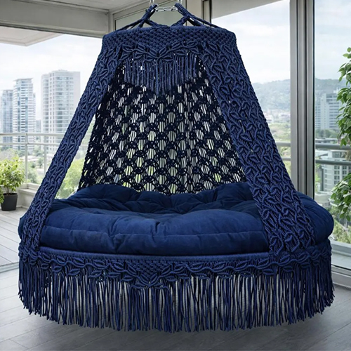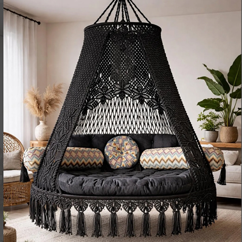 Riddhiz Overseas, a Mumbai-based handicraft exporter, specializes in premium handwoven macrame swings that blend authentic Indian artistry with contemporary global design.